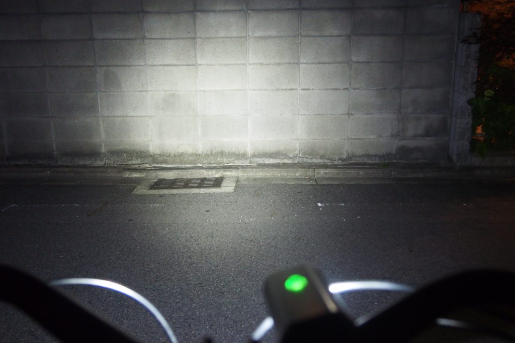 比較的暗い当店裏の路地で700ルーメン照射してみました。
