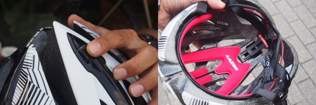 LAZERの代表的な機能と言えばやはりこの頭上のダイヤルを回す事絶妙なフィット・サイズ感の微調整が可能な”ロールシスシステム”。