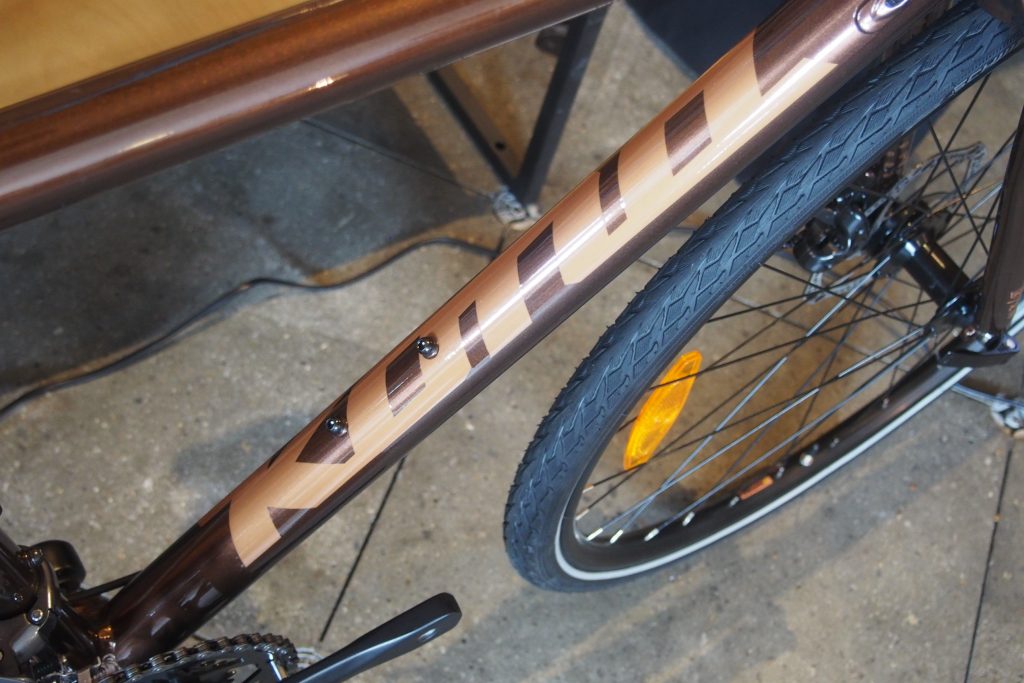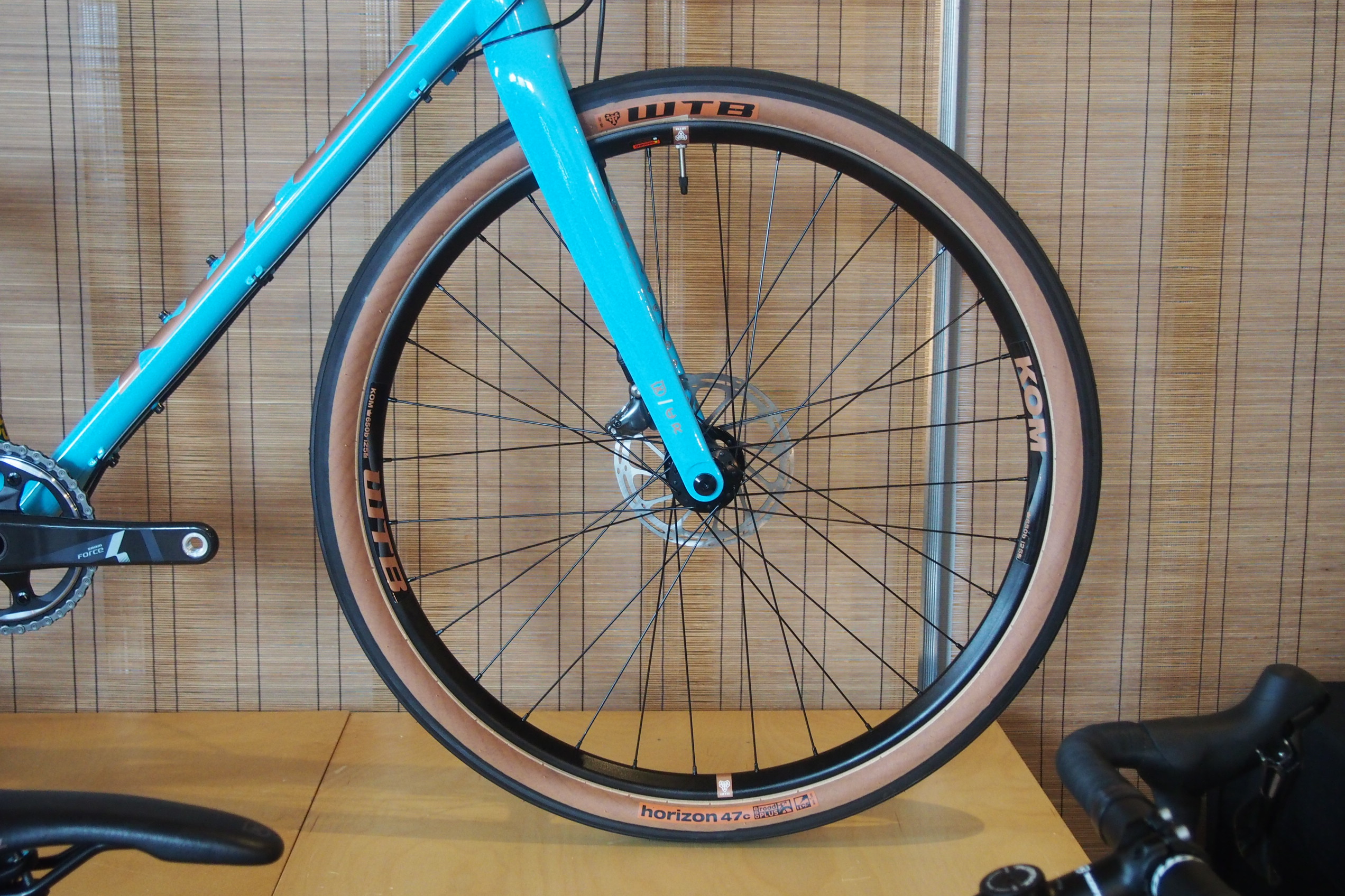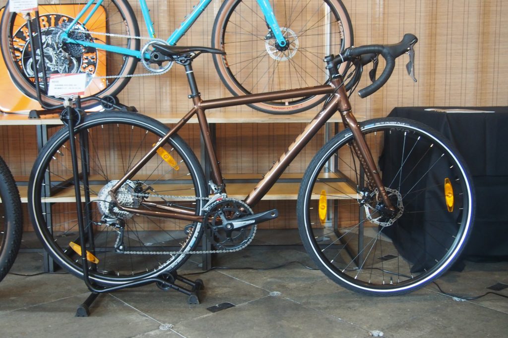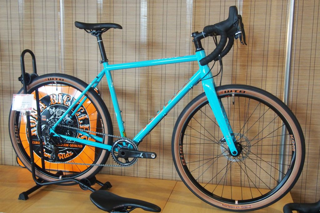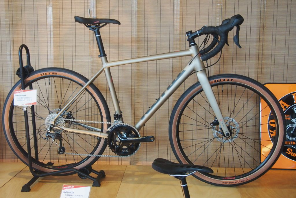 Matt Metallic Sandカラーが美しいNEWモデル。 上記ROVE LTDと同じくロードプラスタイヤ、WTB HORIZON650x47Cタイヤを採用。
