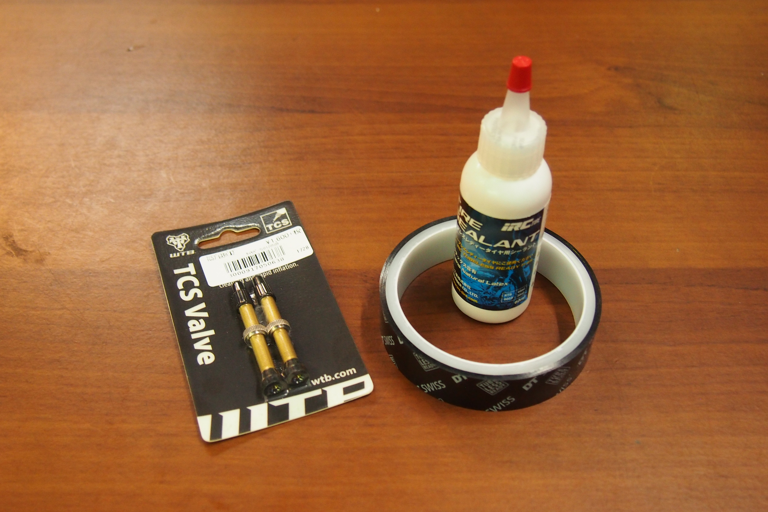 タイヤとホイールに加えて空気漏れを防ぐシーラントとチューブレス用のリムテープ、チューブレス用バルブを用意してあげれば準備はOK、取り付け作業の工賃は2750円~で承りますのでお気軽に!