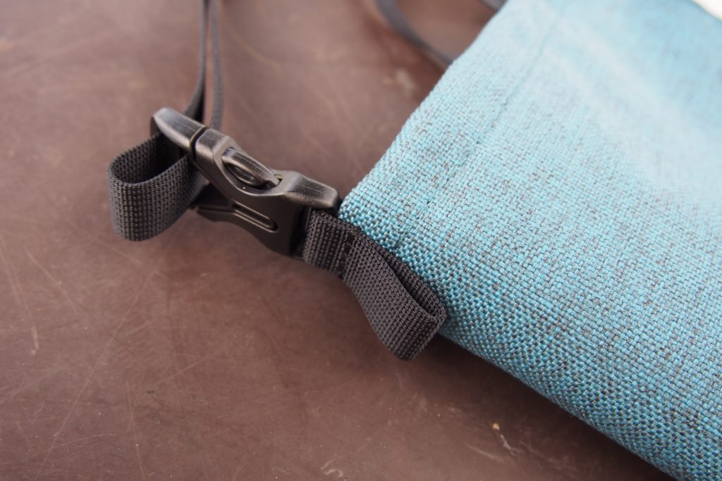 更にバッグ入り口についたダイニーマ素材のファスナー付きの天マチがついておりここを引っ張り出せば更なる容量アップに!元々の形では急な雨の時にバッグ入り口から水が入ったり、ダートを走っているときに荷物が飛び出たりなんて事もあるかもしれません。