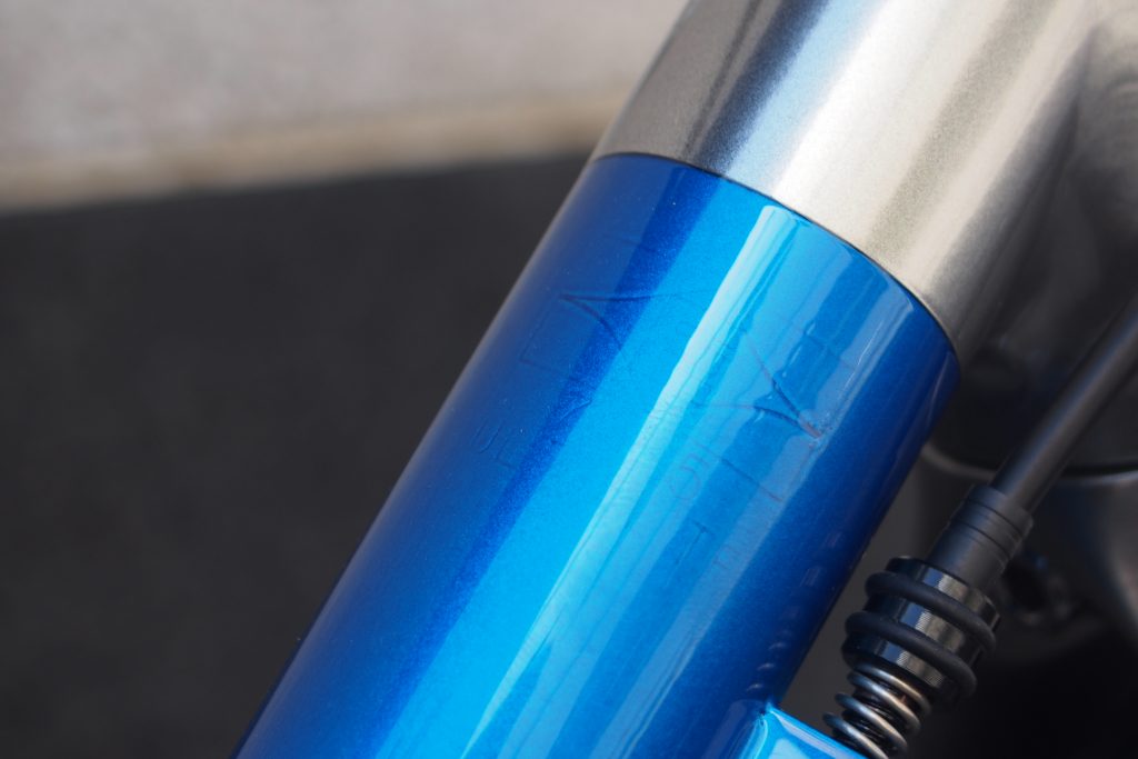 最先端のアルミフレームテクノロジーの代表的ともいえるハイドロフォーミング成型などはあえて採用していないシンプルでさほど太くない丸パイプのアルミフレームは、クロモリにはない小気味良い軽快な走り・剛性感を生むのと同時に、これぞロードバイクと言わんばかりのシンプルなフォルムを成り立たせます。