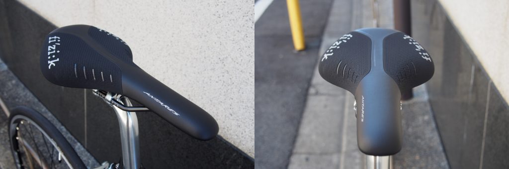 今回はシンプルに2x11SPEED SHIMANO 5800系105コンポ+WH-RS010 ホイールセット。サドルには同じくイタリアンブランド、fi’zi:k(フィジーク)ANTARES R3 Largeサドルをチョイス。