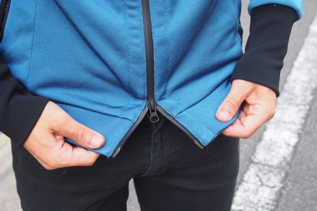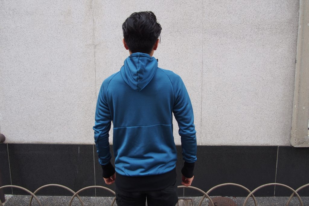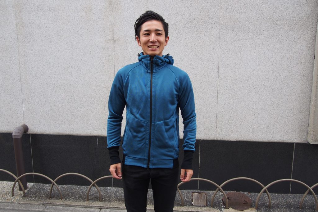 表面にはポリエステル、裏面にはアクリル起毛を使った保温と速乾という自転車乗りには嬉しい機能を両立した高機能パーカーがコチラ。