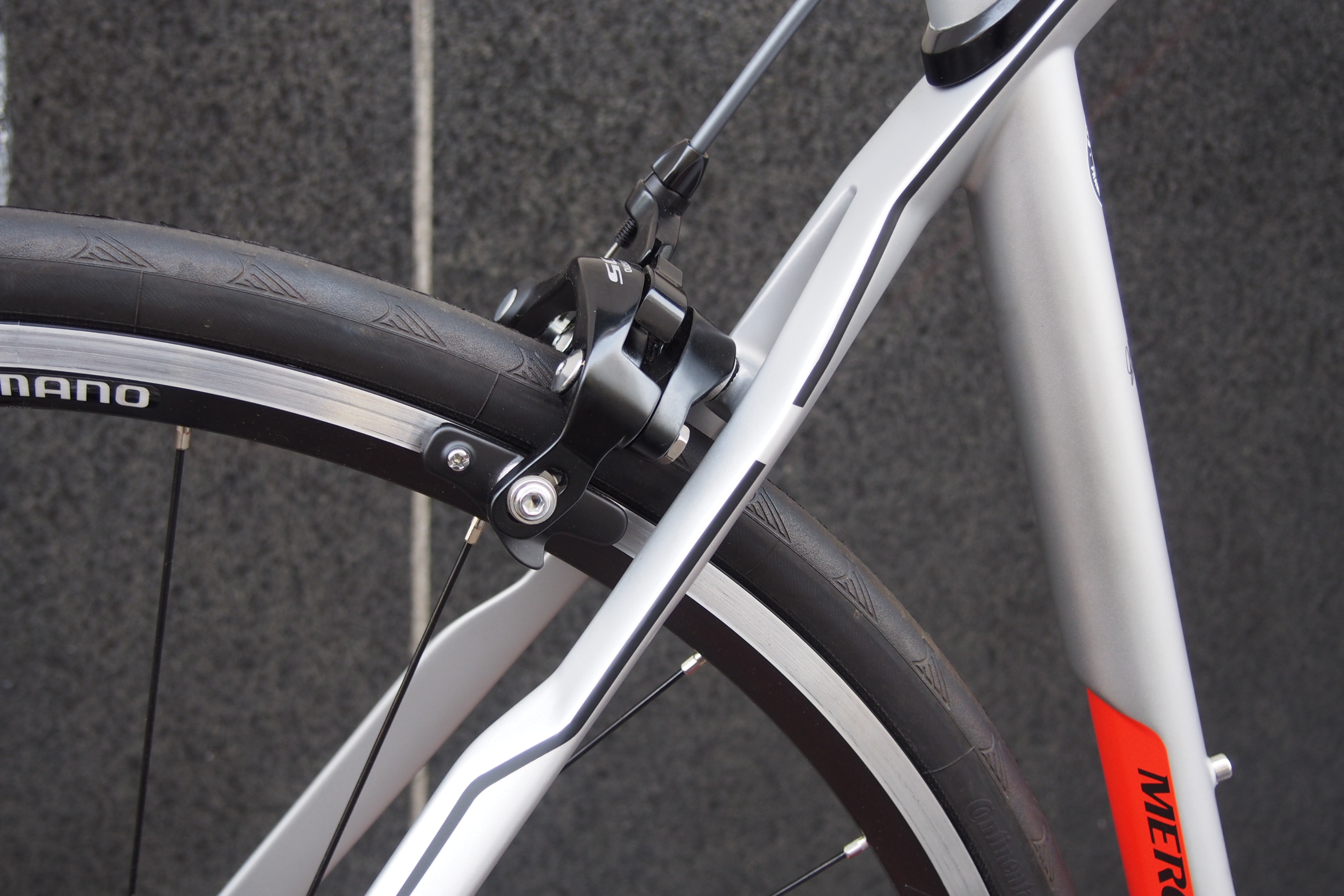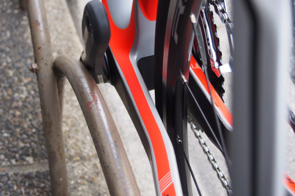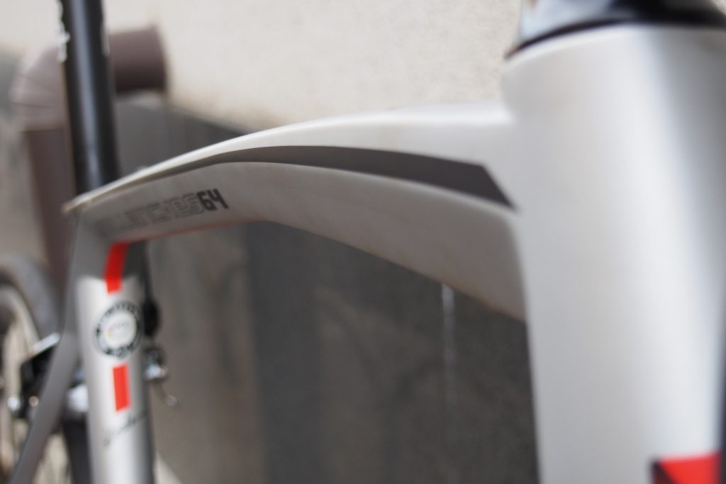 完成車を買う時の一つの基準にもなるフレーム以外のパーツ構成。特にドライブ周り・ブレーキ周りに何が使ってあるかというのは大きなポイントです。サランシェ64ではSHIMANO5800系の11速105をフル採用、大手ブランド完成車では外されがちなブレーキキャリパー・クランクまでも105グレードというのはかなりありがたいです。もちろん、ノーブランドのパーツでも動作には支障はありませんがブレーキ制動力や変速の確実性といった細かなところではSHIMANOに軍配が上がります。