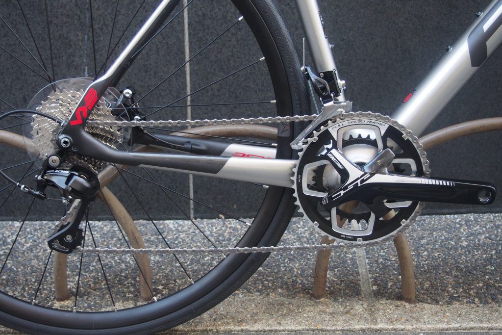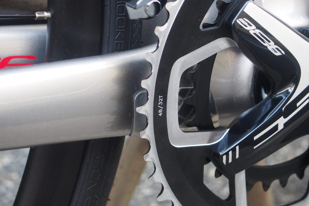 またクランクにはSHIMANO製にはラインナップのない小さいギアの選択を可能とするFSA製48/32Tが用意され、リア11-32Tの構成でギア比1までの軽いギアが踏めます。