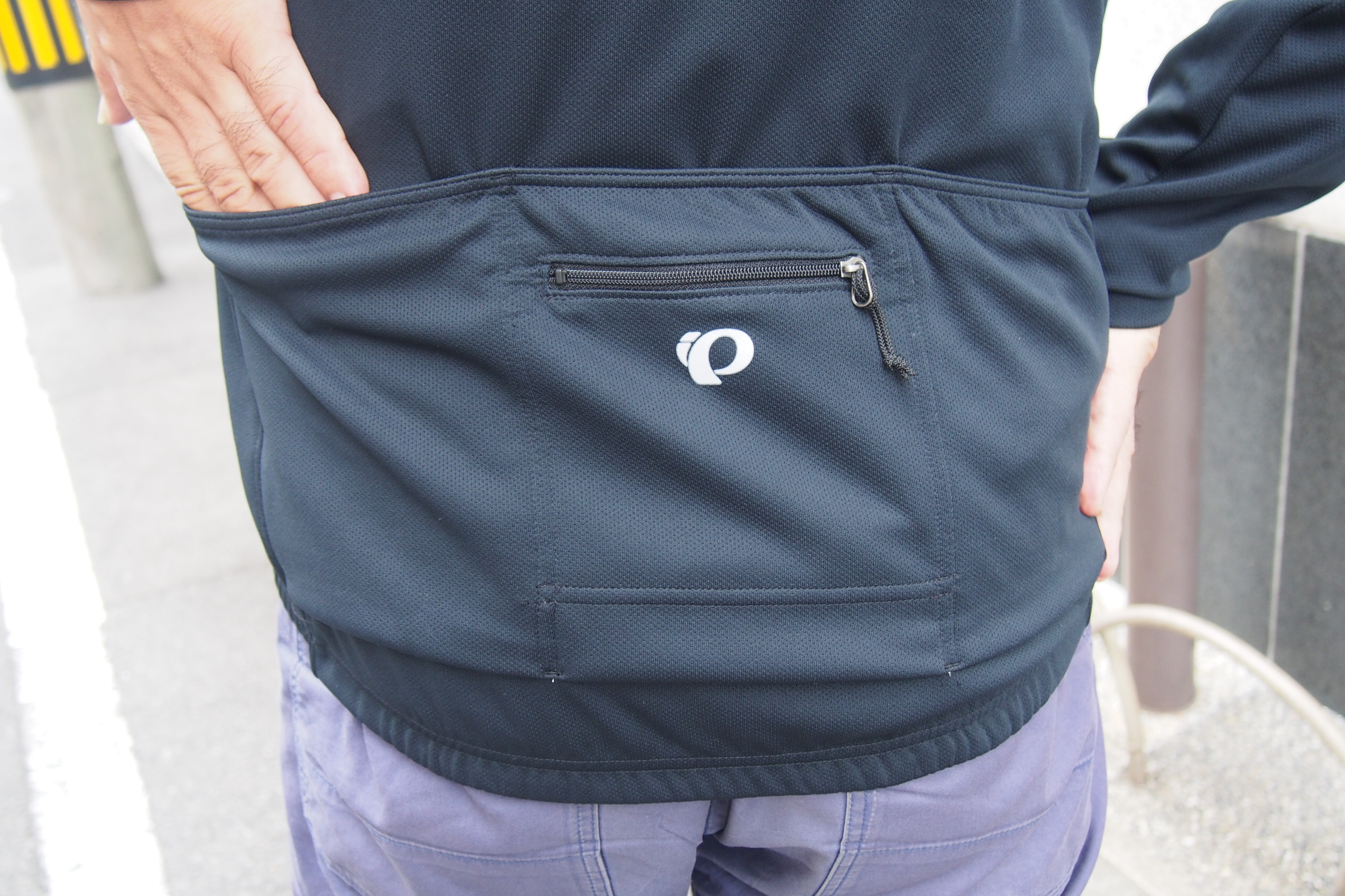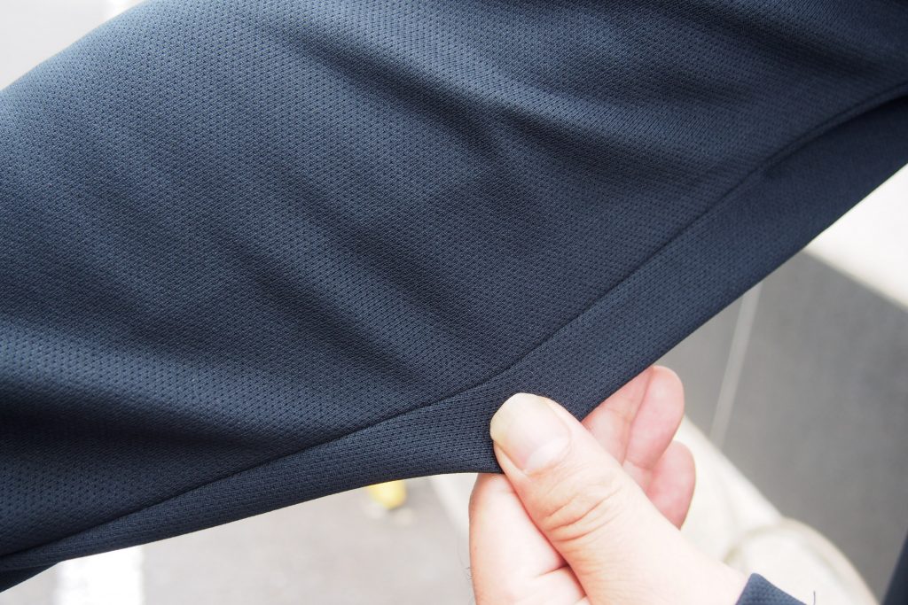 ジャンルとしてはロングスリーブジャージとのこともあってバックポケットもしっかり3つ装備し、中央には更にジップポケットが追加で付けてあるので鍵やライターなど小さい貴重品を入れておくのにも重宝しそうです。もちろん、背面の裾回りにはずり上がり防止の滑り止めもついていたりとジャージなだけあって大事な機能はしっかりと抑えてあります。