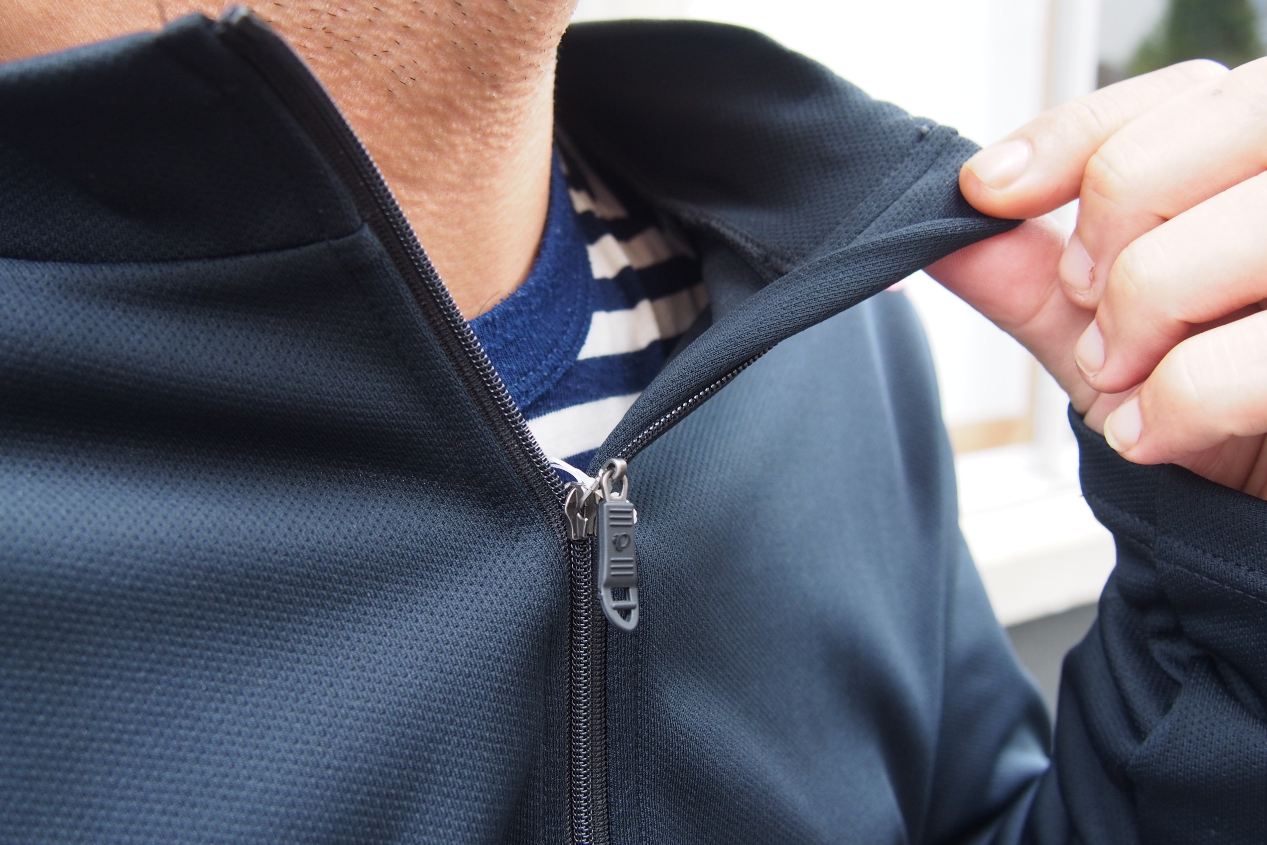 今回の2000-BLは秋冬に使いやすいロングスリーブジャージですが、フルジップで着脱が容易なため、バッグの中にジャケットとして忍ばせて置いたりと用途の幅は割と広そうな印象。