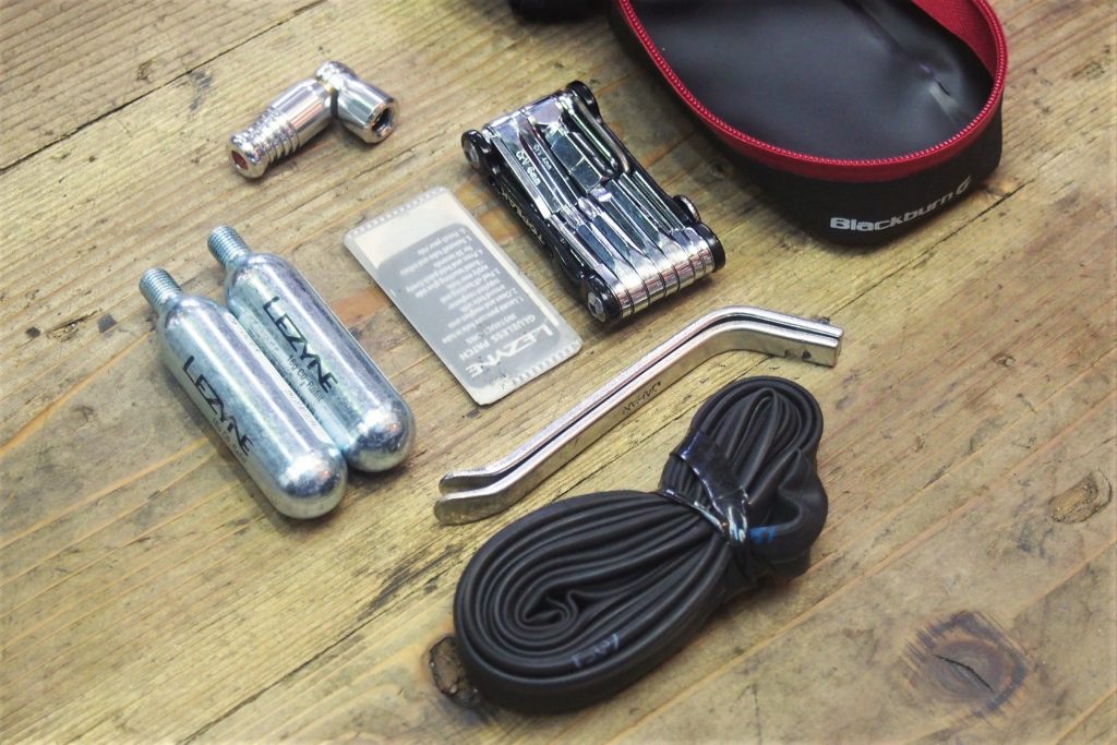 タイヤレバー含めた携帯工具、交換用の予備チューブ、そして当然ではありますが空気入れ。この3点はサイクリングの必需品です。
