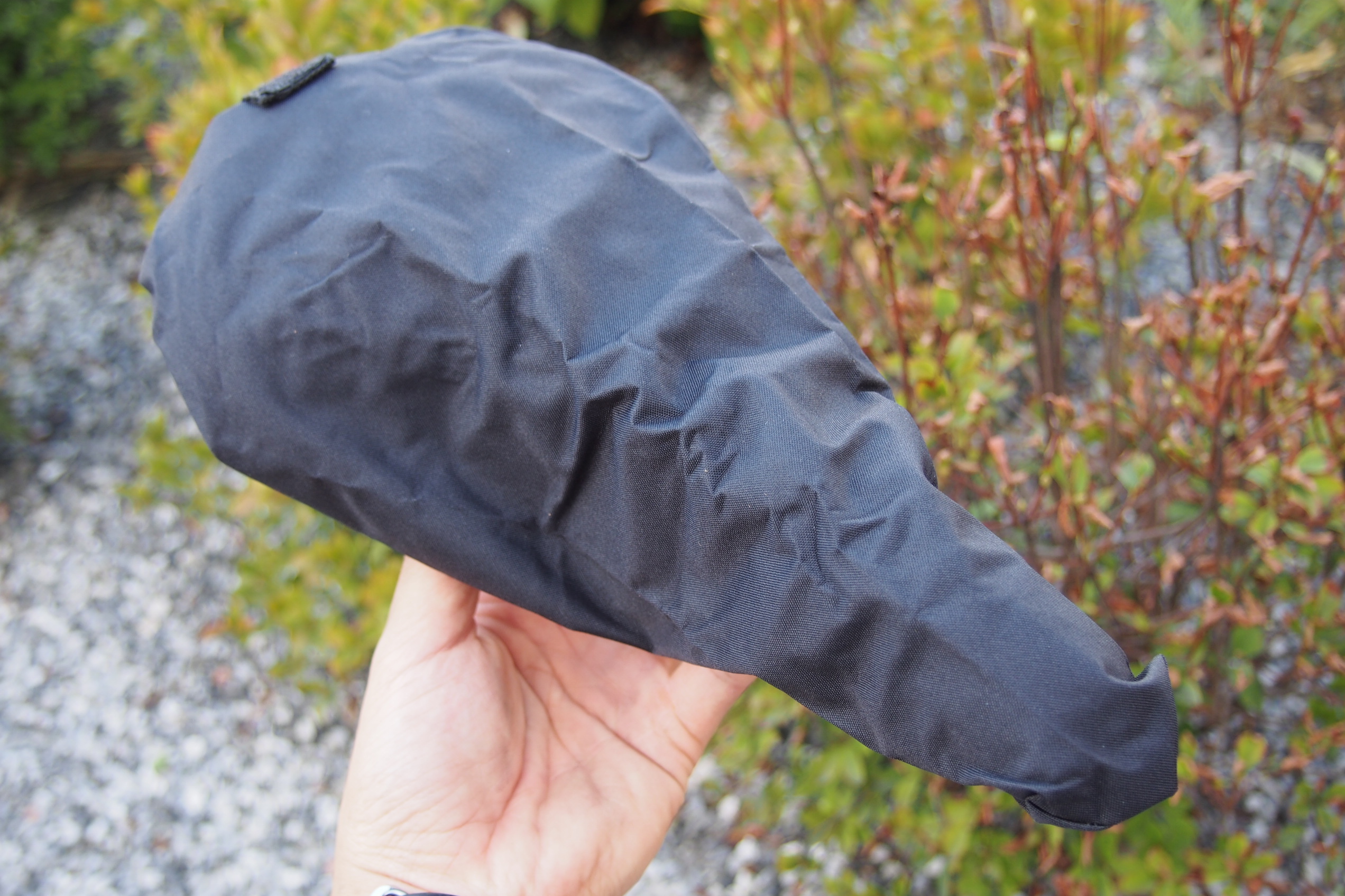 大切なサドルを雨から守ります。使わない時はベルクロでクルっとまとめてサドル下へ収納。