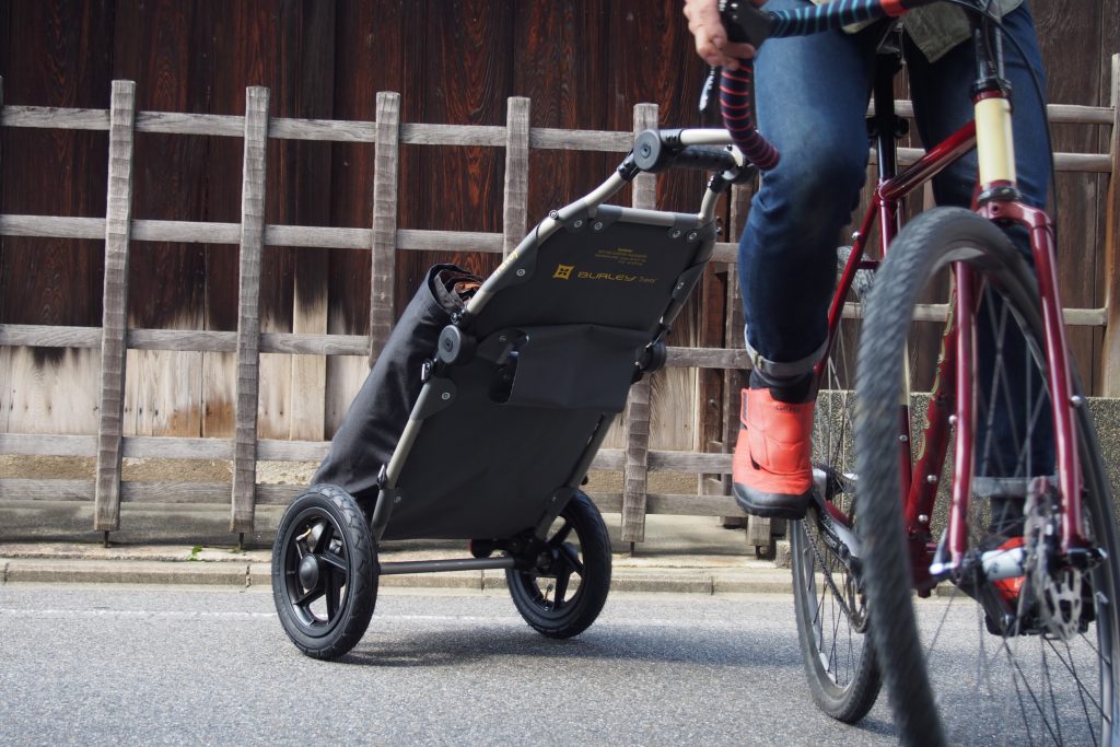 立ちこぎやコーナリングでも、トレーラーが暴れる事なく安定した走行が可能です。