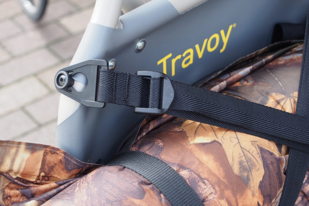 トレーラー本体に供えられた左右合計8個のフックにひっかけて、荷物をがっちりホールドします。