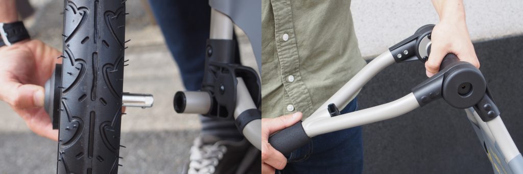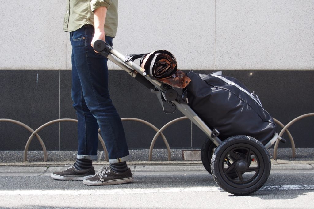 取り外した後は通常のキャリアとして使えるので、バスや電車などの公共交通機関への乗り換えも可能。旅行にもとっても便利ですね!