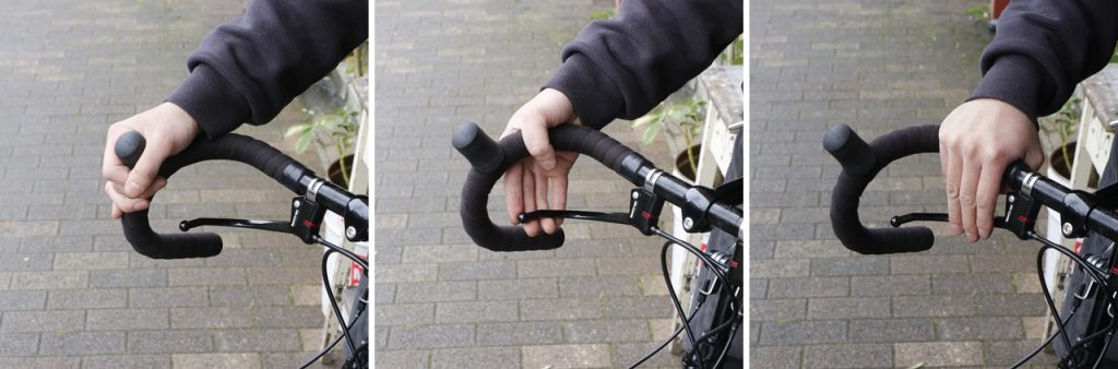ブラケット肩部分でもフラット部分でもブレーキをかけられるレバーです。