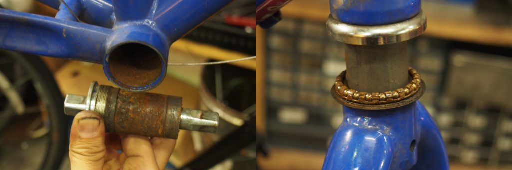 クロモリフレームあるある、これは中々ハードな錆具合です。やりがいありですね!!