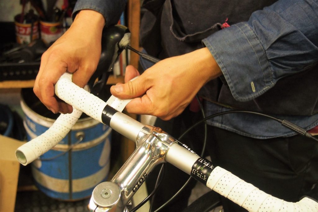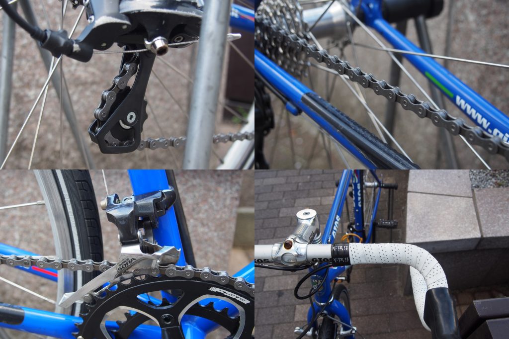 今回はワイヤー類やブレーキパッド、パンクしていたタイヤ等の消耗品や酷く傷んでいたバーテープなどは新品に交換させていただきました。