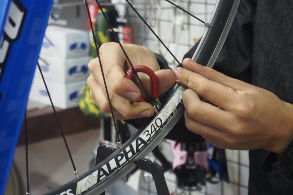 スポークのテンションを微調整する事で再度正確に左右上下の振れをとっていきます。