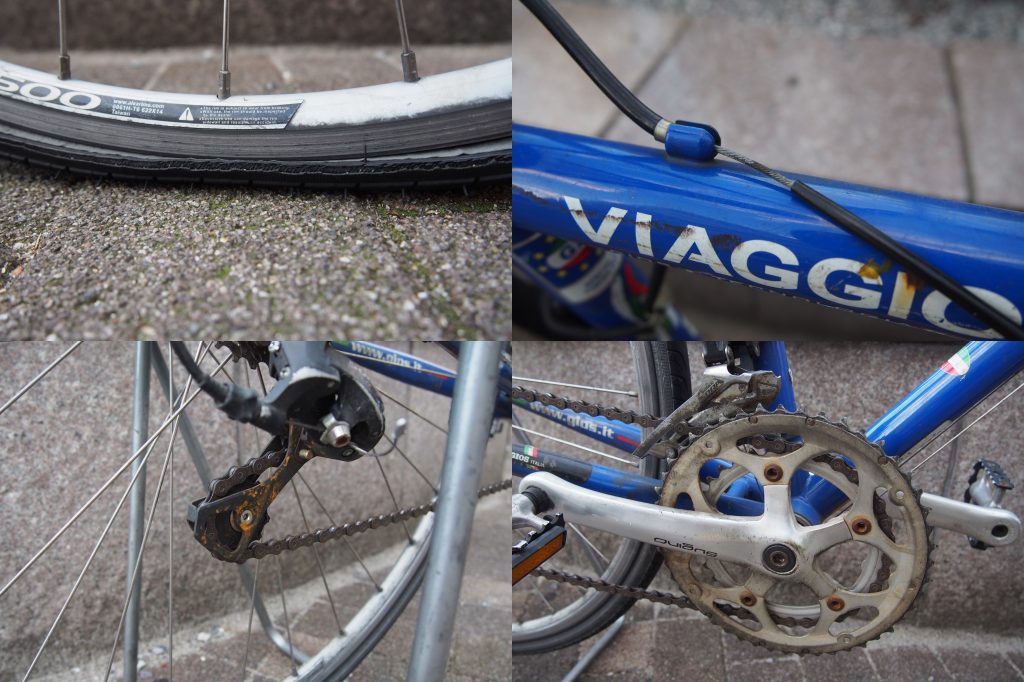 かなりガッチリ使っていただいており、タイヤやブレーキ周り、チェーンなど消耗パーツ含め、全体的に痛みが激しい状態です。