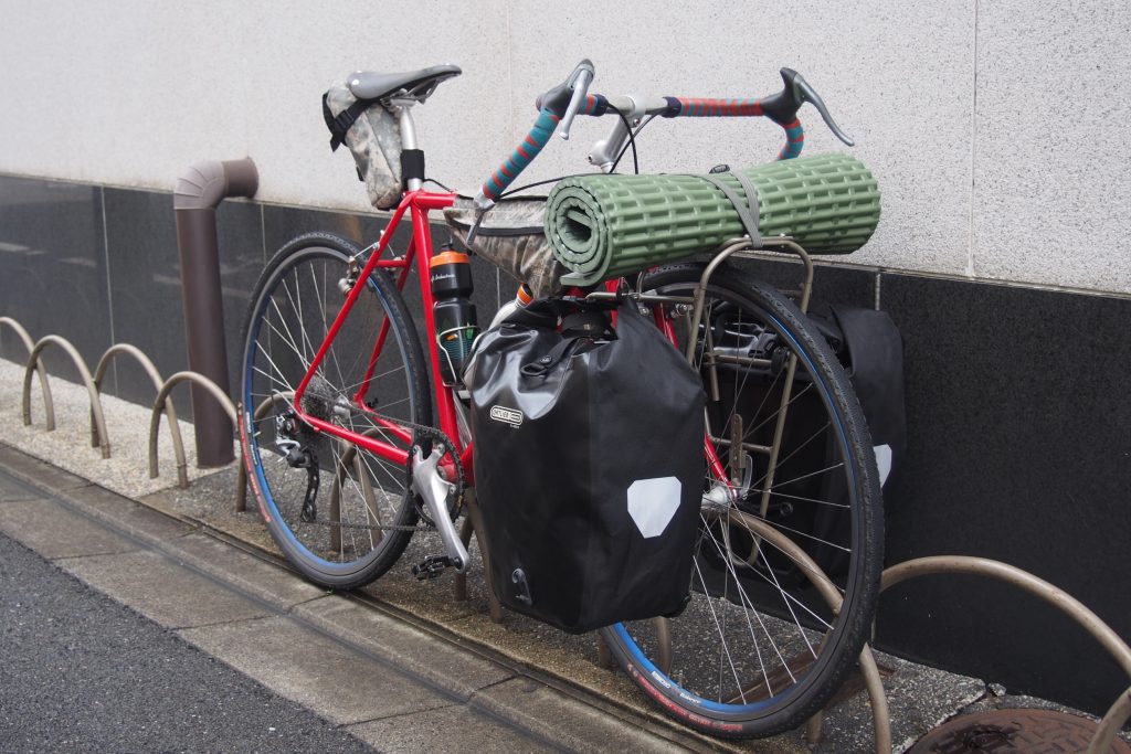 パニアバッグと言えばココというくらいの大御所ORTLIEB。やはり魅力的なのは水の浸入をバッチリ防ぐ高い防水性と日本一周などのハードな使い方でも安心できる耐久性でしょう。もちろん、今回も絶対に濡らしたくない寝袋やかさばる調理器具などはまとめてパニアに収納しました。
