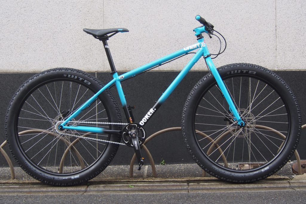 そのクロモリが持つ細目のフレーム&フロントフォークに、27.5PLUSセミファットタイヤという、見た目のボリュームコントラスト激しい全体の佇まいに加え、潔いシングルギアシステムというシンプルな機構。
