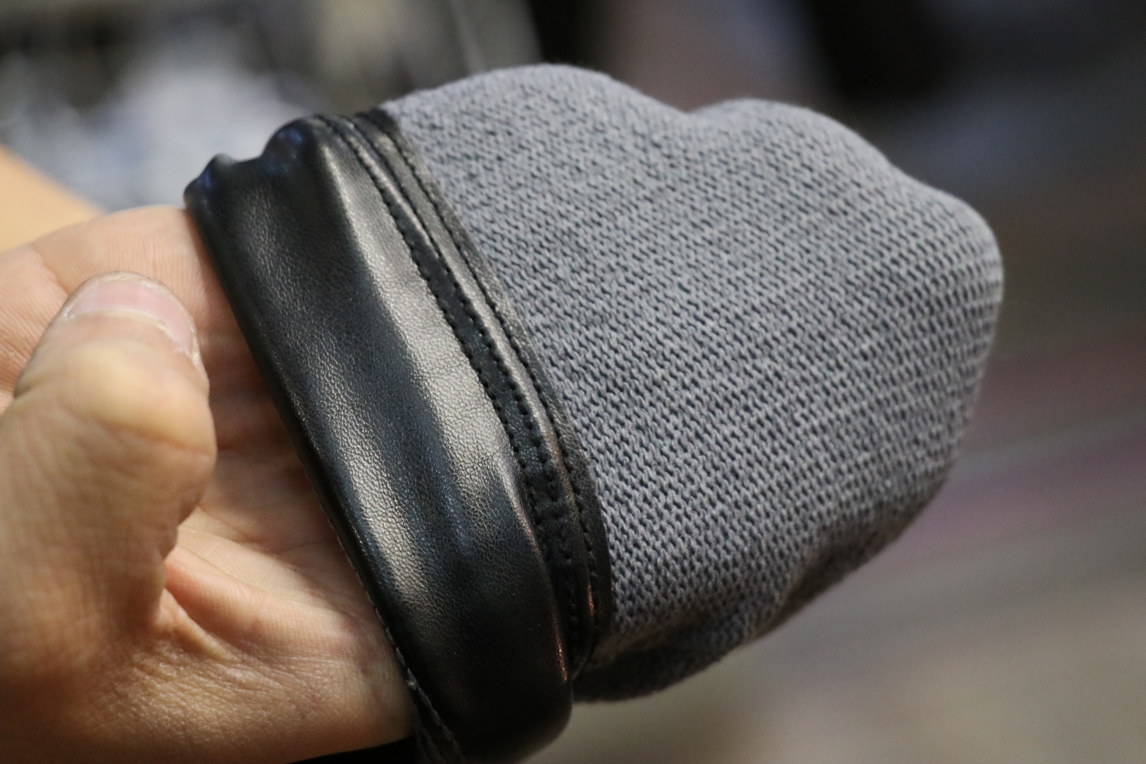 柔らかい素材のアウター部と、保温性高く匂いが出にくいウール素材のインナー部の間に、完全防水・高い透湿機能を持つ「ポレール皮膜」を配備。