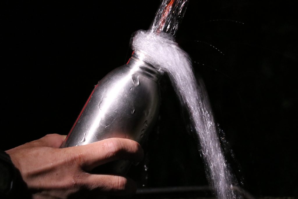お昼とは違った雰囲気だったのと、こんな時間でも僕たち以外に水を汲みに来てる人がいる事にビックリ◎