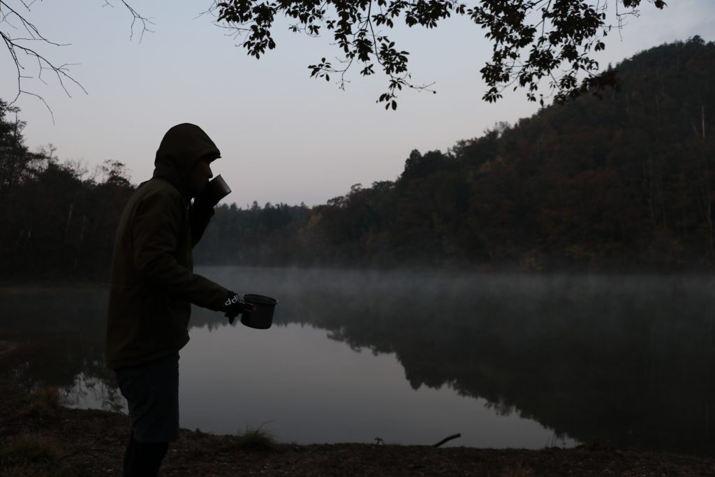 翌朝、テントのジップを開けると昨晩は暗くて見えなかった景色が目の前に◎