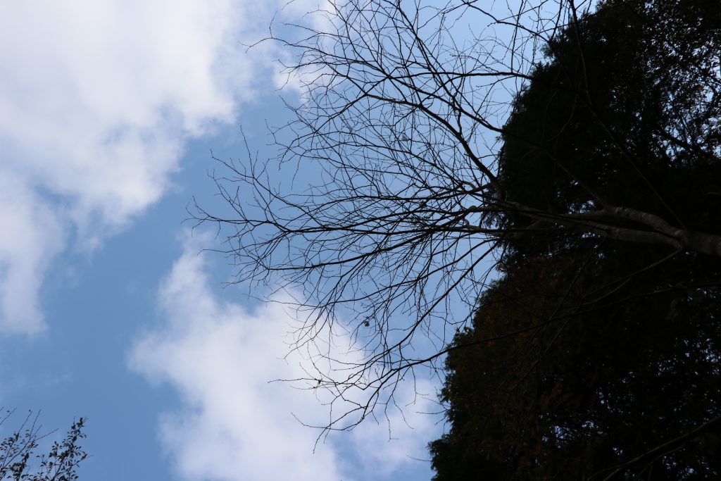 下は落ち葉の絨毯で上は青空が広がる最高の環境。