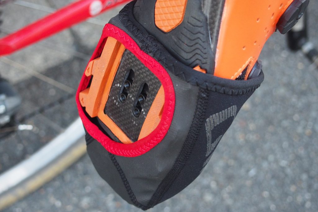 当店でもGIROやLINTAMANなどのビンディングシューズをご案内していますが、ほとんどのシューズが何らかの通気性を持たせる処理を施しています。夏場なら蒸れにくく快適ですが、冬場はどうしてもつま先がかじかんで不快に。そんな時こそこうしたカバーが必要になります。