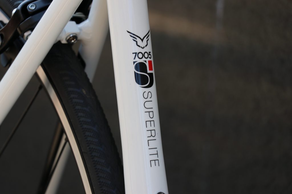 F75でも軽量で高い反応性を持つ7005アルミをハイドロフォーミングにより成型し、レースユースにも耐える高い反応性・軽量さを維持しながらもロングライドなどのホビーユースでも安心の快適性を持たせるという正にオールラウンドを突き詰めたフレームになっています。パッと見た時のデザインはオーバルパイプのシンプルな物に見えますが絶妙にチューニングされたパイプ形状や厚み、接合部の形状等の技術によりトルクを掛ければパワーをしっかりと受け止め素早く反応、路面からの振動も抑えてくれるしっかりとした作りこみが感じられます。