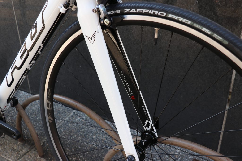 フォークはカーボンブレード・アルミコラムと価格に見合った仕様ですがオールラウンドなフレームに合わせて剛性と快適性を両立。フレームサイズごとに必要な剛性としなりを解析し、形状、素材、接合部をチューニングするという手法がこの価格帯でとられているというのはユーザー側からすると有難い限りです。