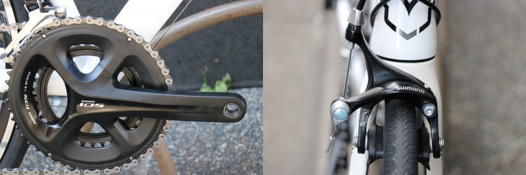 レースに出てみても安心できるグレードの構成、フレームにかなりの技術投資をしながらもこの価格・この構成で出せるというのはなかなか驚きです。完成車でコストカットされがちなクランク・ブレーキのチョイスもクランクは105で揃えてくれているので変速性能については文句なしでしょう。(更に性能アップしたい方にはフロントディレイラーのみ新型の5800系105に交換がオススメ!少ない投資で確かな性能アップが得られます。)