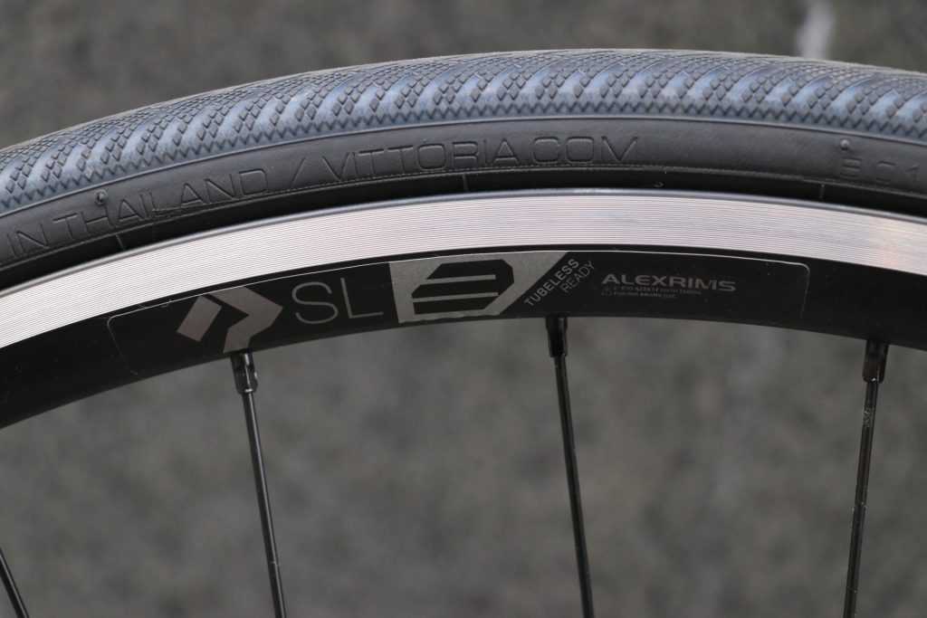 そして、F75もう一つのパーツのポイントがこのホイール。そこそこのリムハイトのベーシックなデザインですが、実はチューブレスレディ仕様に。最近のグラベルロードやシクロ等のダート系自転車にはよく採用させていますが、ロードでの採用は中々高印象です。するしないは別としても転がりの良さと快適性を高いレベルで両立できるチューブレスをホイール交換無しで試す事が出来るのは選択肢を持つ意味でも大きいでしょう。
