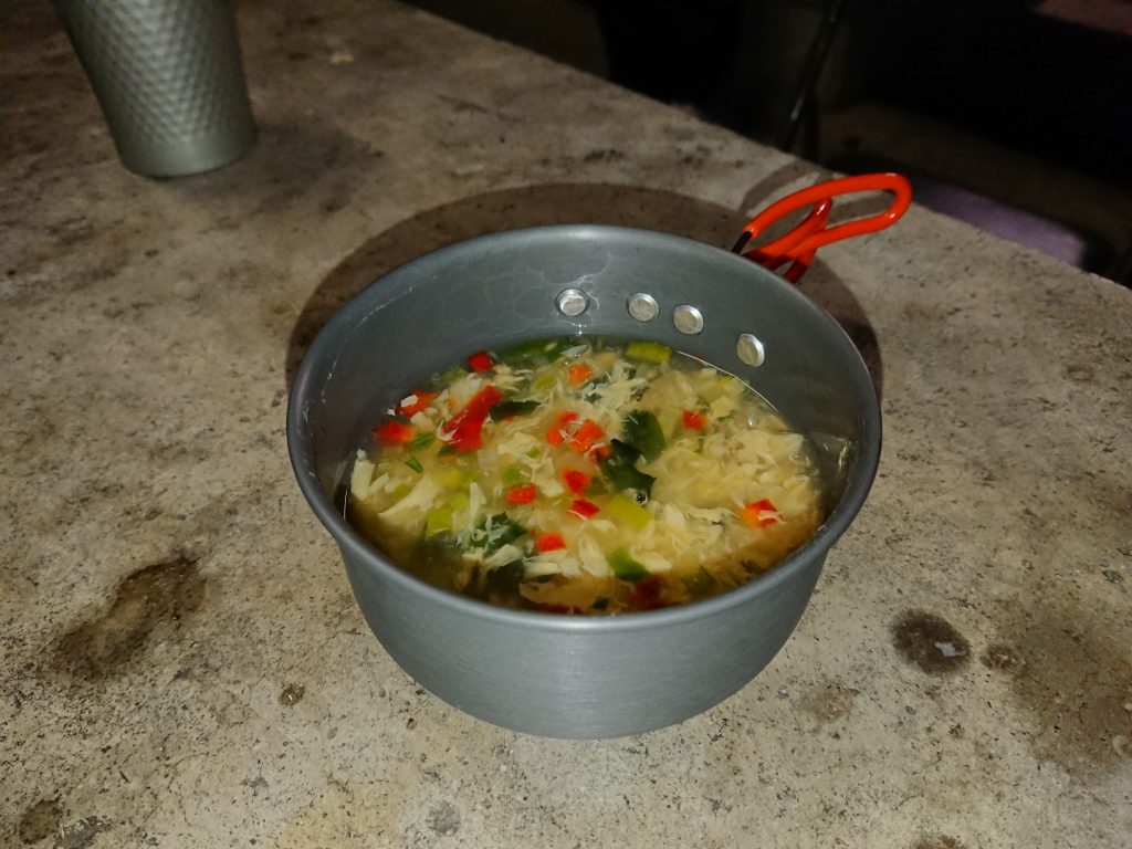 一日目。降りしきる雨の中デジカメを壊してしまい、キャンプ場についてからのこれが唯一の写真となってしまいました。。冷え切った体に染み渡るたまごスープ。