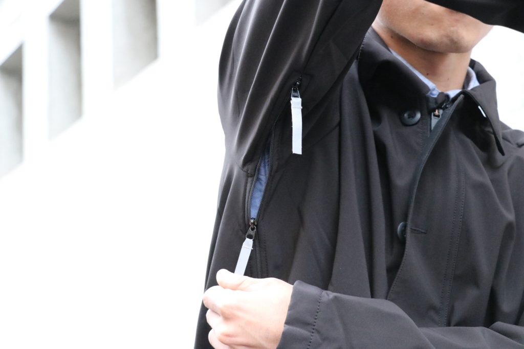 アウトドアウェアの定番ギミック、脇下のベンチレーションももちろん完備。