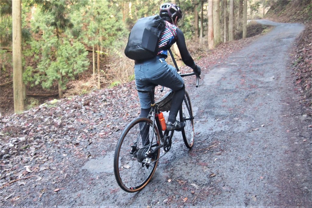 KONA WHEELHOUSEに乗って颯爽と林道をパスするKさん。もうすぐやって来る2018モデルの試乗車が待ち遠しい!
