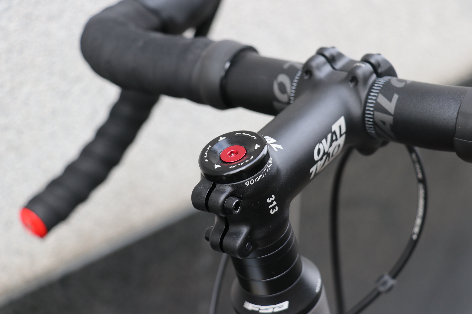 カーボンコラムの場合、ステム上に5mmほどスペーサーを積むのが強度的セオリーですが、