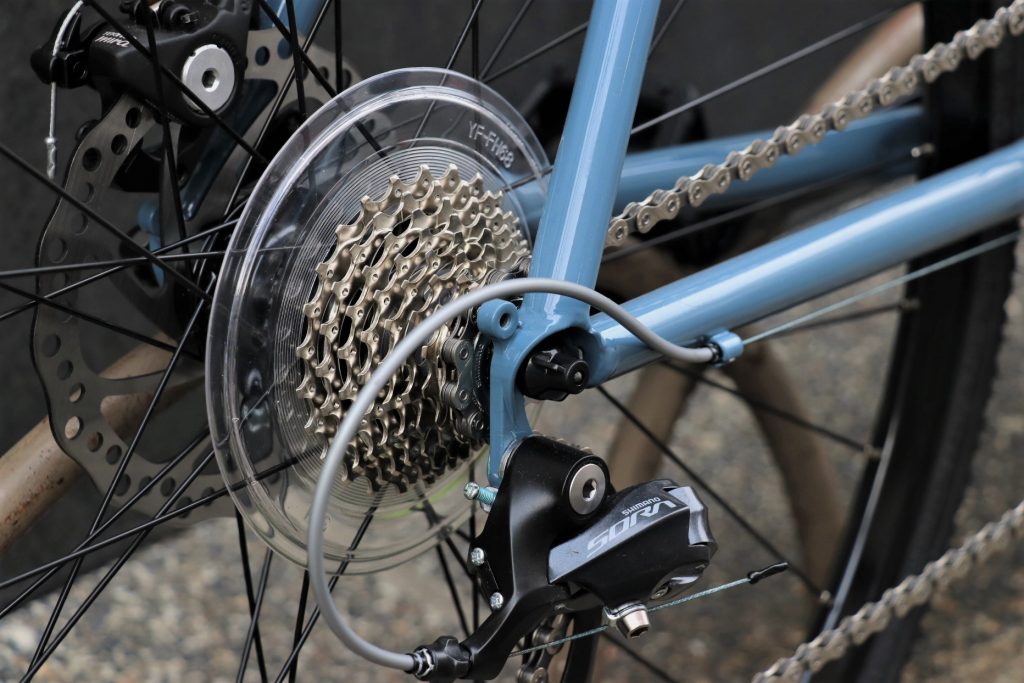 直線のみで構成された線の細いクロモリフレームは日常にもすんなり馴染む心地よさがあります。