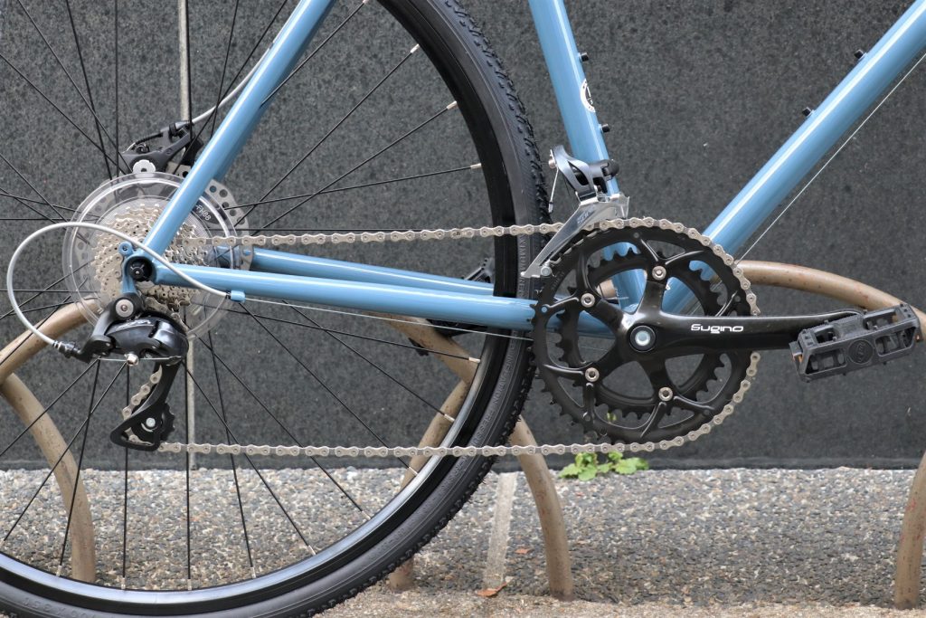 性能だけで比べれば、シマノが優位ではありますが、SUGINOクランクにしかない佇まいはクロモリフレームにピタッとハマるんです♪