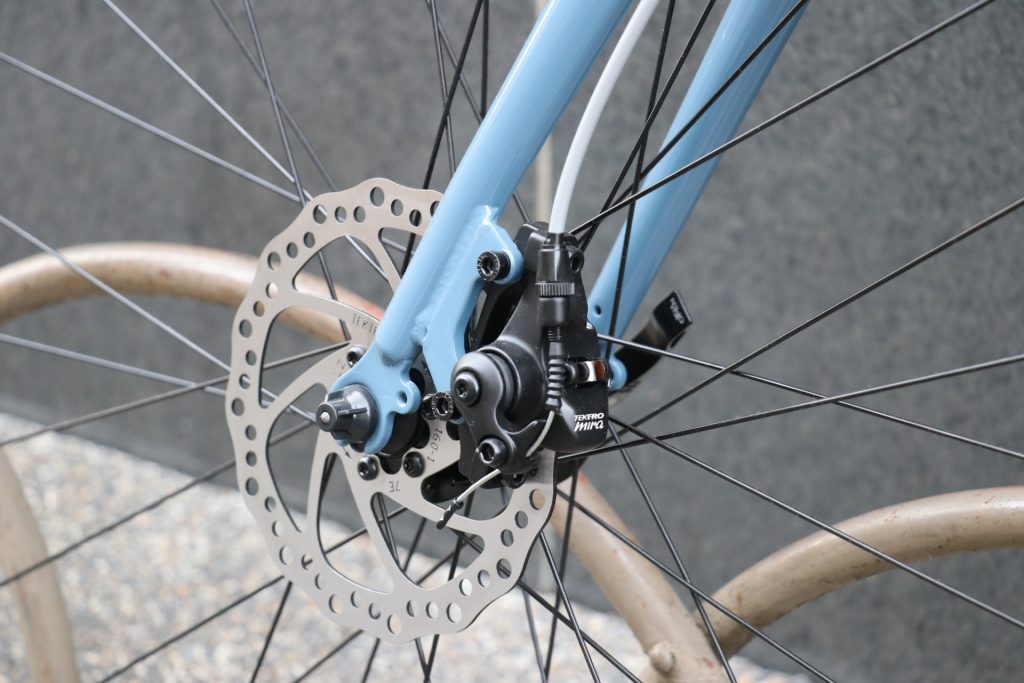 shimanoやTRP SPYRE等にカスタムすれば軽く高い制動力になります。