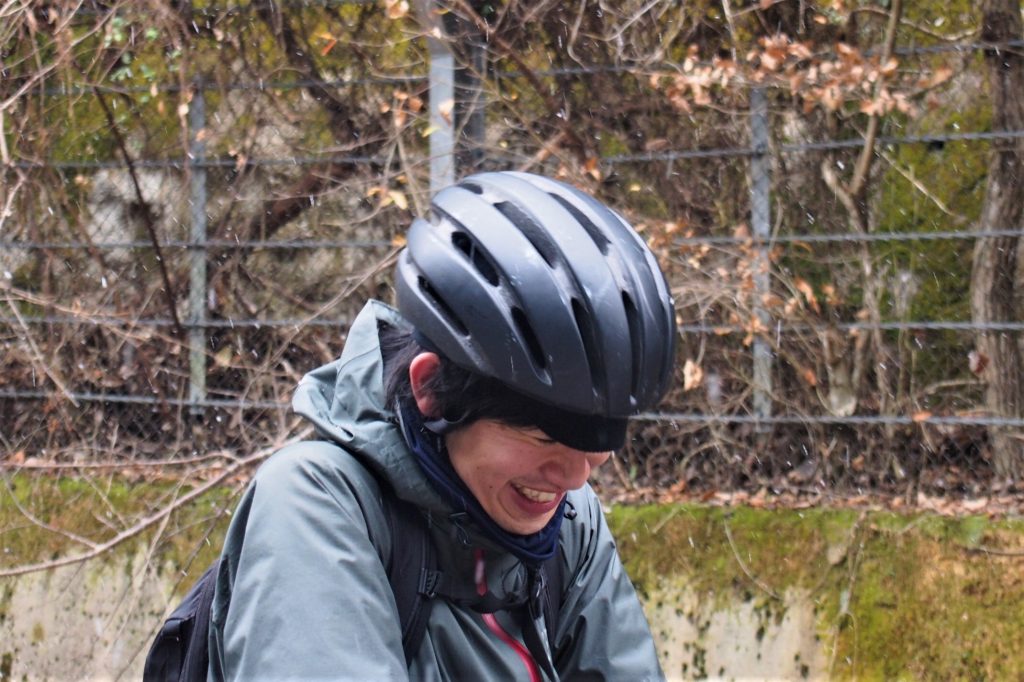 京見峠の向こう側はめちゃくちゃ寒いので下り用にウェアを着込みます。