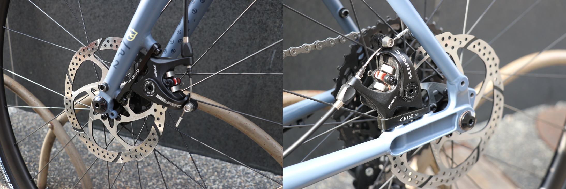 また2018モデルからは前後ともにフラットマウント規格。ポストマウントやインターナショナル規格に比べボディ自体コンパクト=軽量、またシンプルなフレーム形状&充分なクリアランスの確保が出来、メンテナンス性も向上しております。