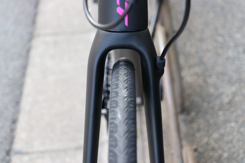 しかしながら、あえて35mmに制限したクリアランスはVRの根底にあるロードバイクとしての軽快な走りを確保することにもつながっているのでGood!