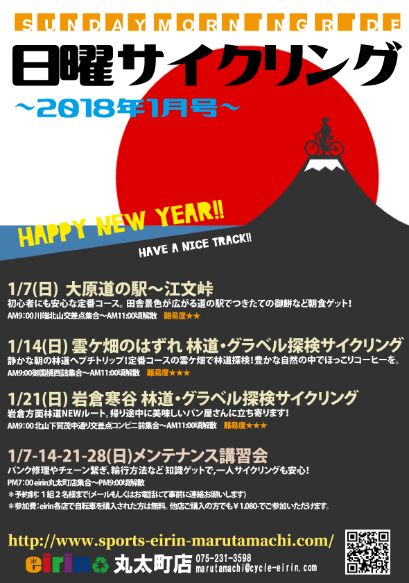 2018.01.07 2018モデル , BLOG , KONA(コナ) , PANASONIC ORDER (パナソニック オーダー) , イベント , お知らせ , グラベルロード , サイクリングレポート , シクロクロス , ツーリングバイク , メーカー別情報 , ロードバイク , 商品紹介 , 年式 , 車種別紹介こんにちわ!京都市内で営業しておりますサイクルショップEIRIN丸太町店 です。