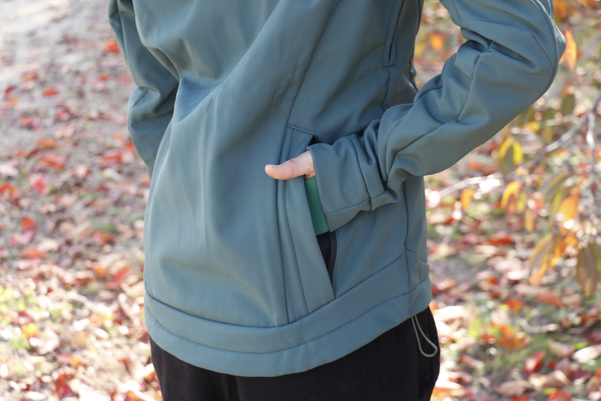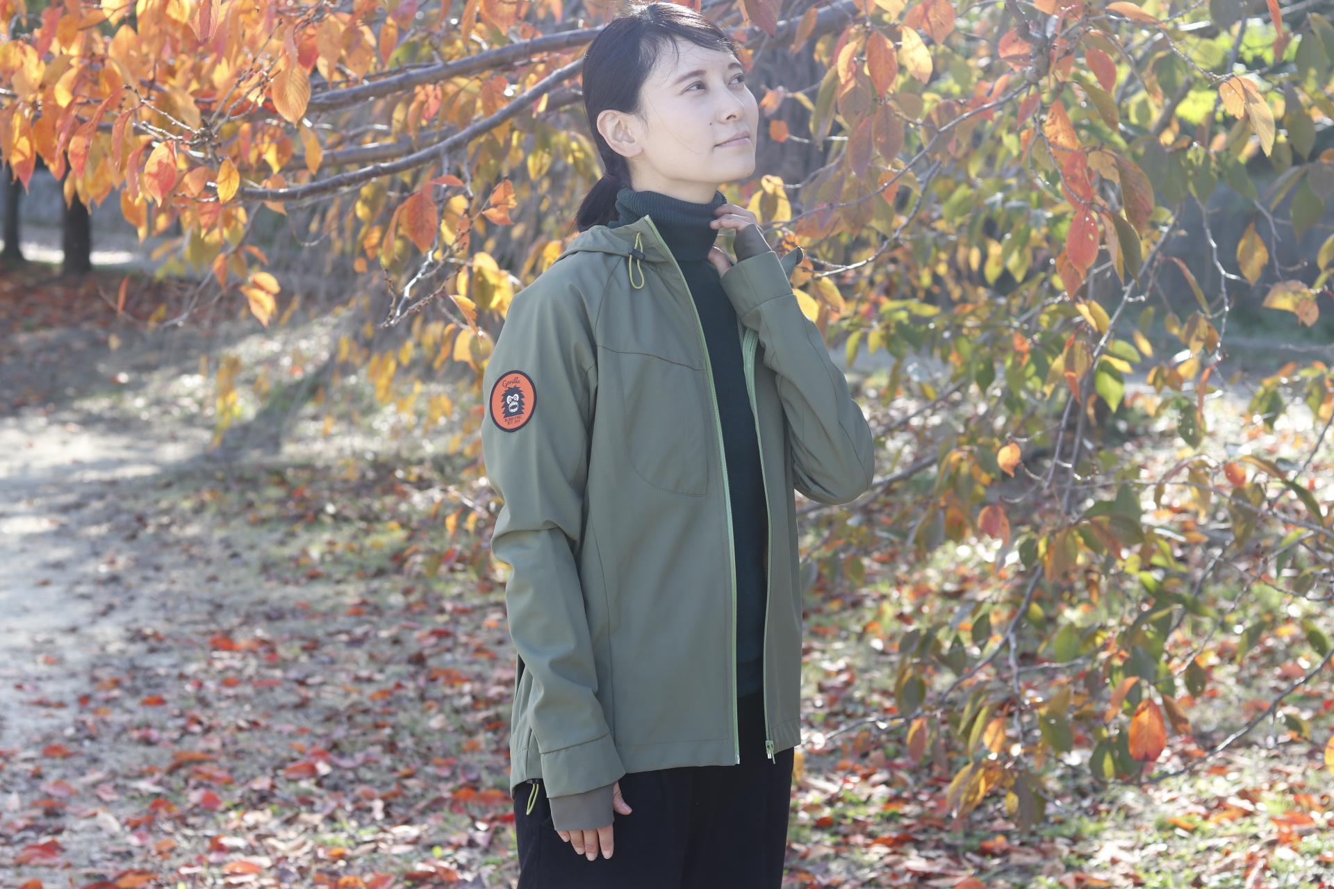 ゴリラジャケットに採用されているのはカジュアルにもスポーティにも使えるアウトドアでも定番の3レイヤーソフトシェル素材。素材自体は柔らかく・伸縮性もあるので動きを妨げないので安心です。