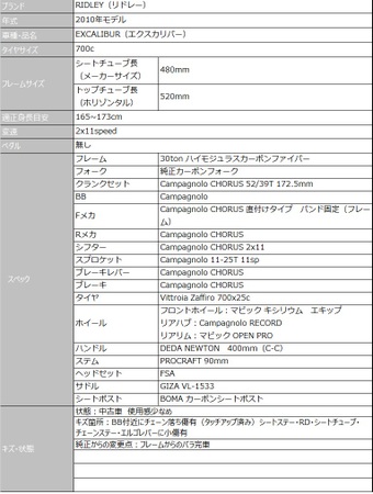 ”中古ロードバイク ”【 RIDLEY / リドレー 】EXCULBUR 2010モデル