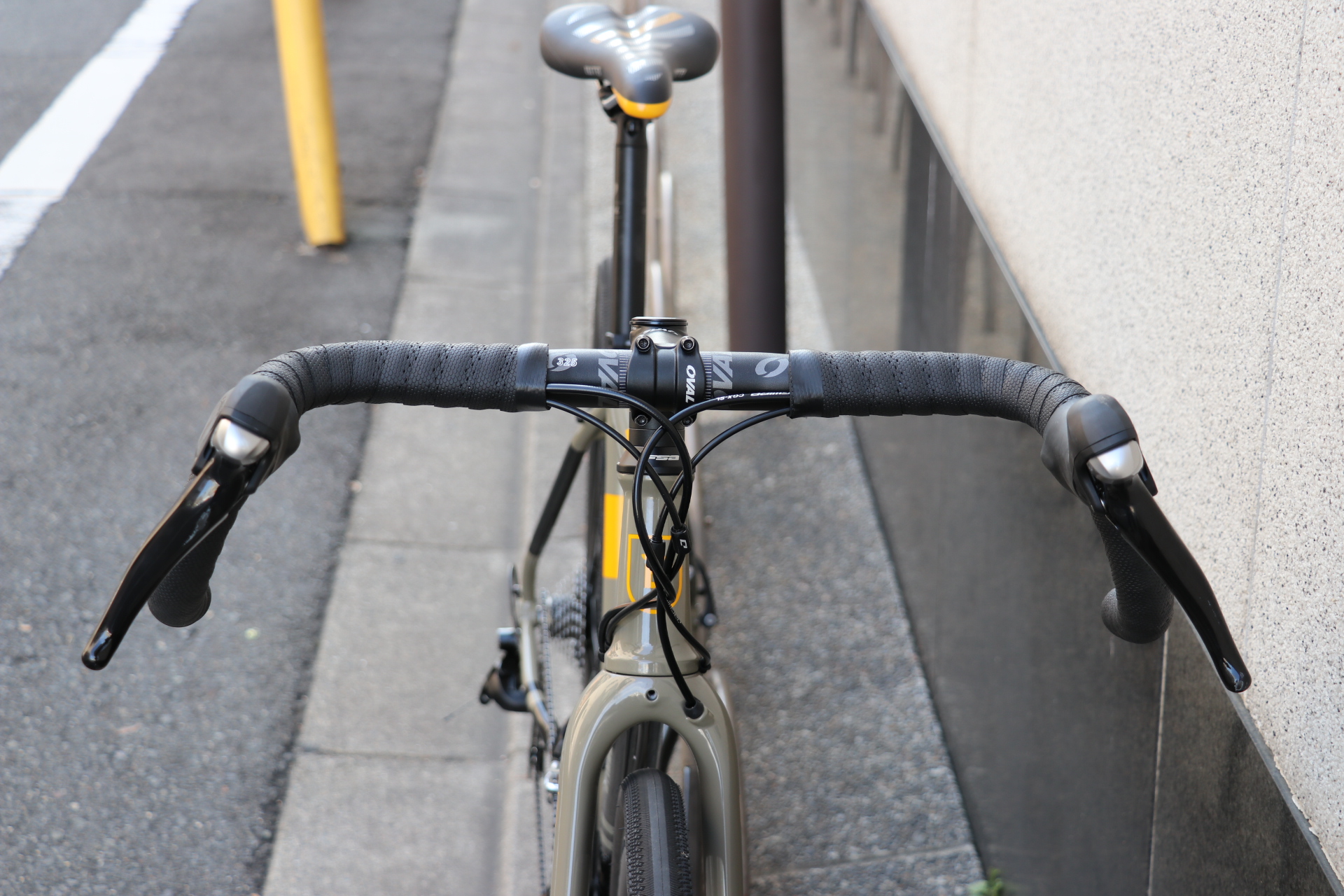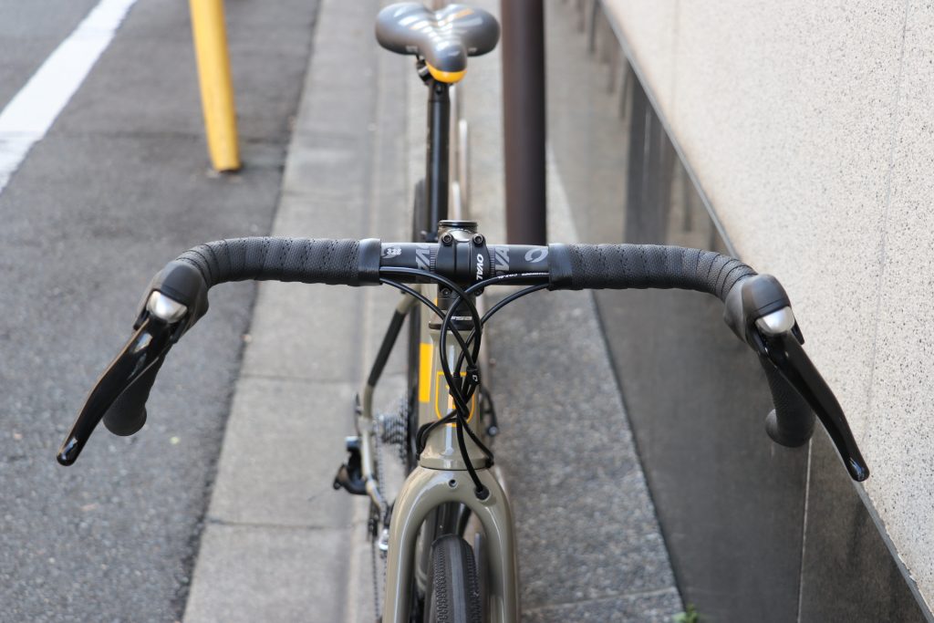 ステム、シートポスト、クランクと同じくハンドルにはOVAL製のハの字に開いた形状のものが採用。FUJIのJARIと同じものですね。