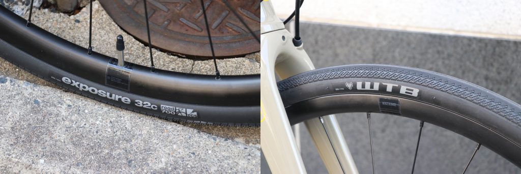 トップ面をスリックパターンとし、アスファルト面での軽い走行性能を確保し、大きすぎず高過ぎないサイドノブが未舗装路での走行性にも安心感高い、絶妙なバランスのデザインを持つ、WTB Exposure70x32Cが標準採用。