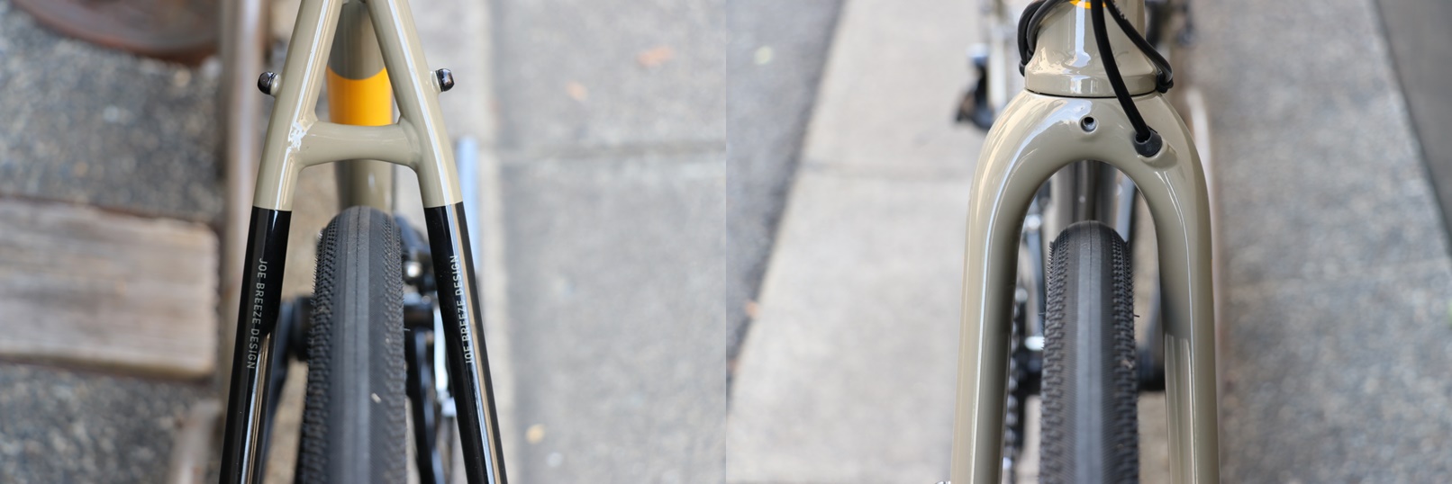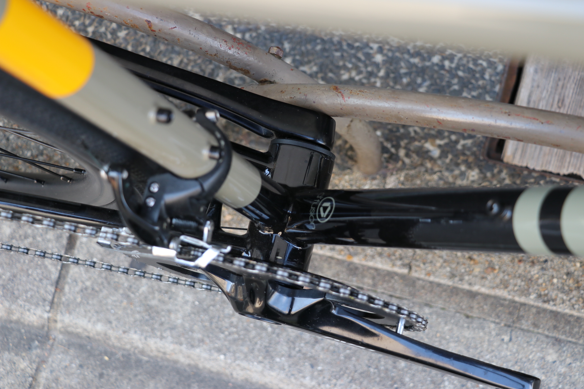 この採用方法はフレーム溶接後に全体を熱処理する工程により、熱収縮によって発生する歪みを前もって計算をしてビルドする必要があるので生産的には非効率的だそうですが、そこは流石のジョーブリーズ率いるブランド。スチールパイプが持つ絶妙なバネ感と精度を余す事なく最高に引き出すために、その方法を採用しているそうです。