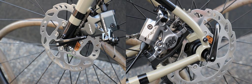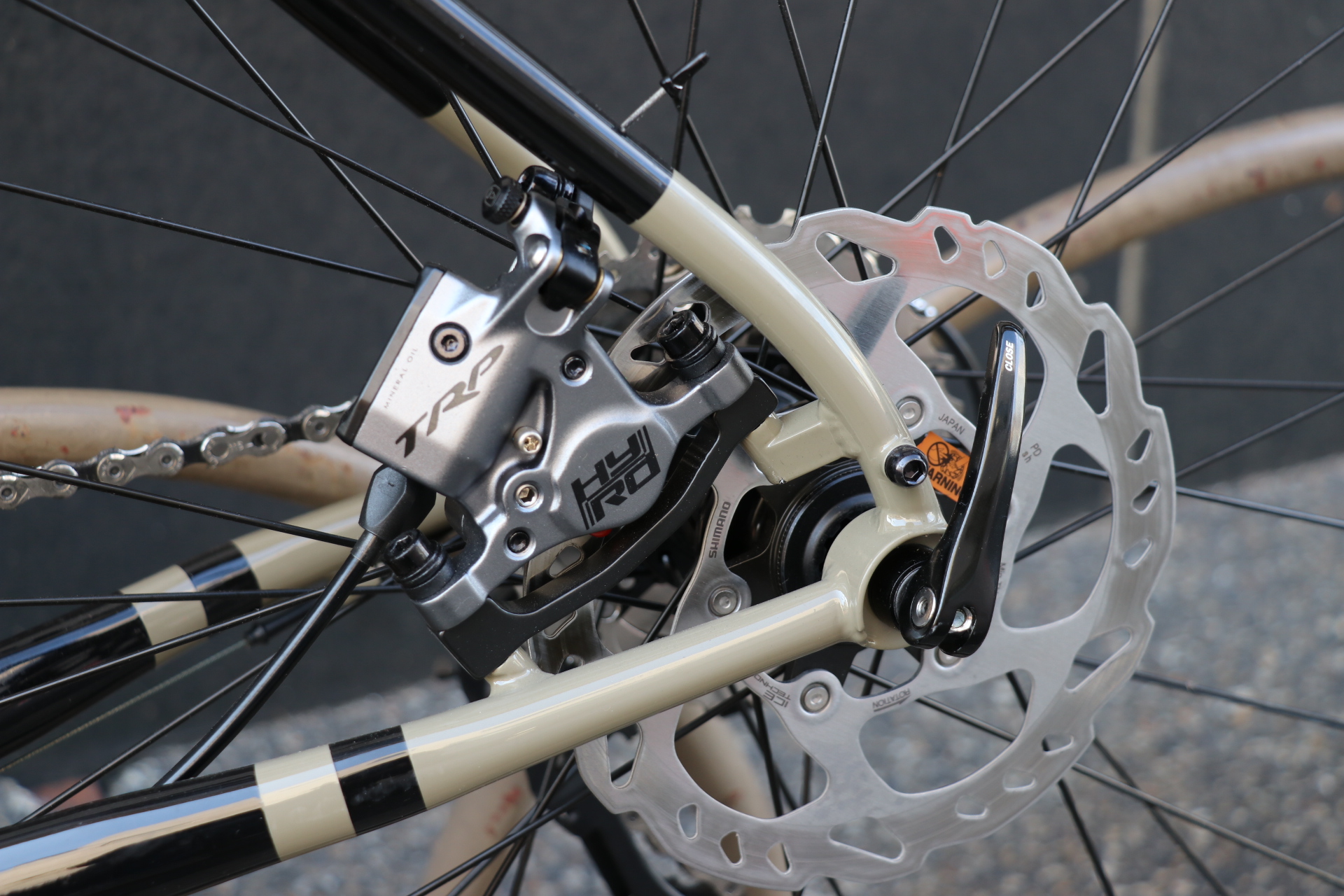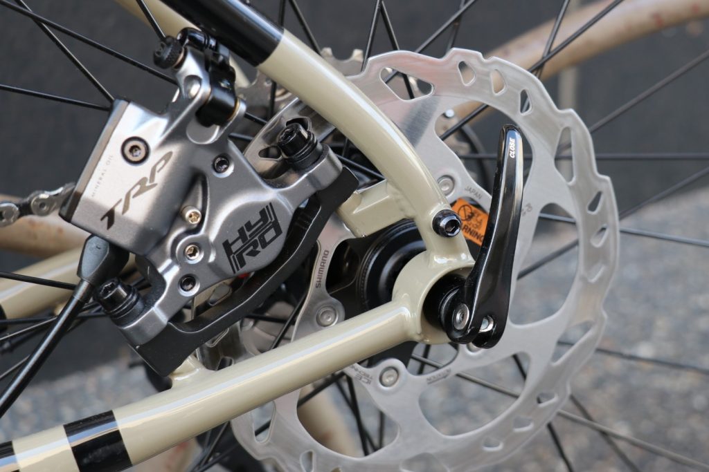 シクロクロスバイクやグラベルバイクのカスタムとして当店でもお馴染み、機械式STIレバーで動作可能や油圧ディスクブレーキキャリパー:TRP HY/RDが標準装備されております。